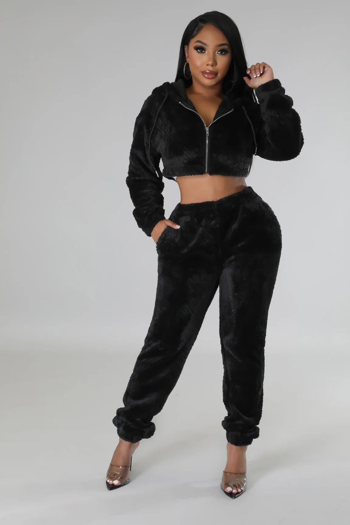 Step into cozy confidence with the Plush Authority Sherpa Two-Piece Set, where comfort meets elevated street style. This ultra-soft sherpa set features a cropped zip-front hoodie paired with high-waisted jogger pants for a flattering, relaxed fit. Designed to keep you warm without sacrificing style, this set is perfect for travel days, casual outings, or lounging in luxury. Wear it together for a bold statement or mix and match for effortless versatility.
