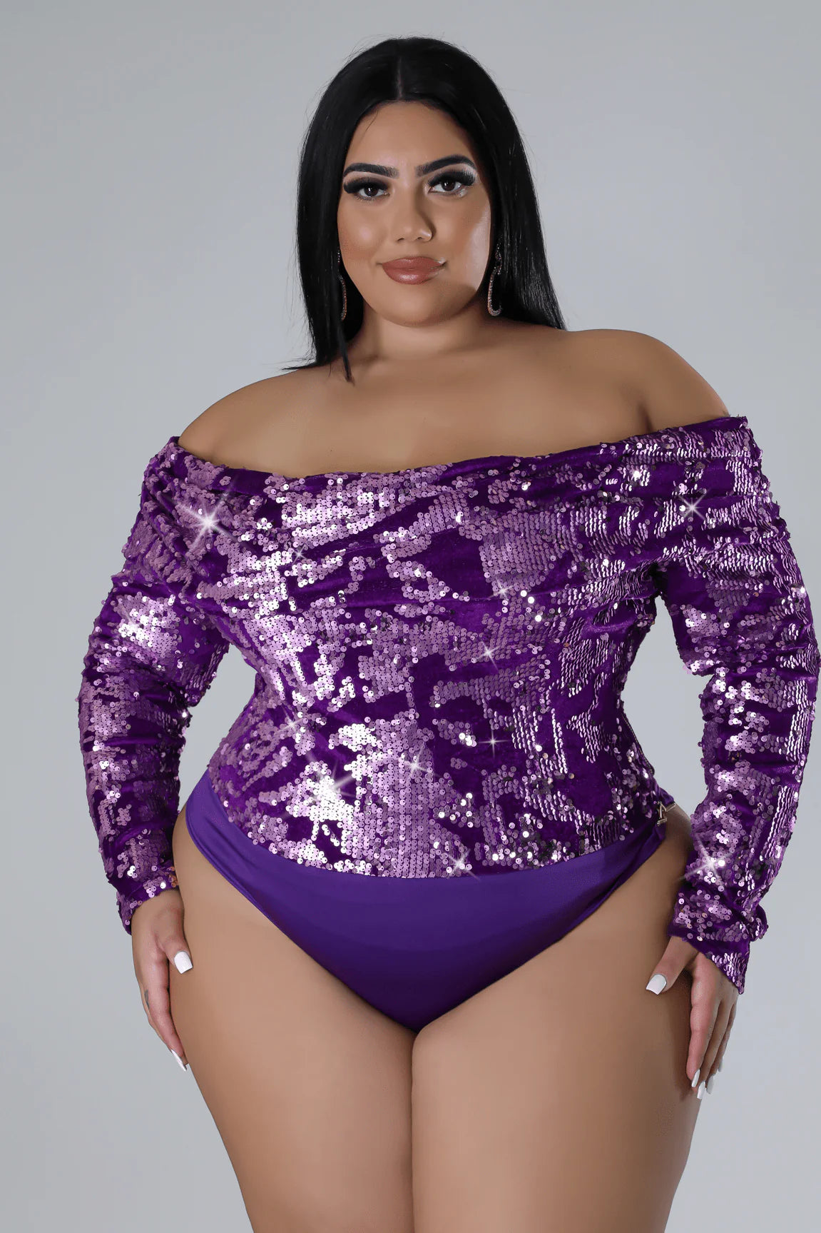 The Spotlight Queen Sequin Skirt Set is designed for bold entrances and unforgettable moments. Featuring an off-the-shoulder long sleeve sequin bodysuit paired with a curve-loving high-waisted skirt, this two-piece delivers instant glamour with zero effort.