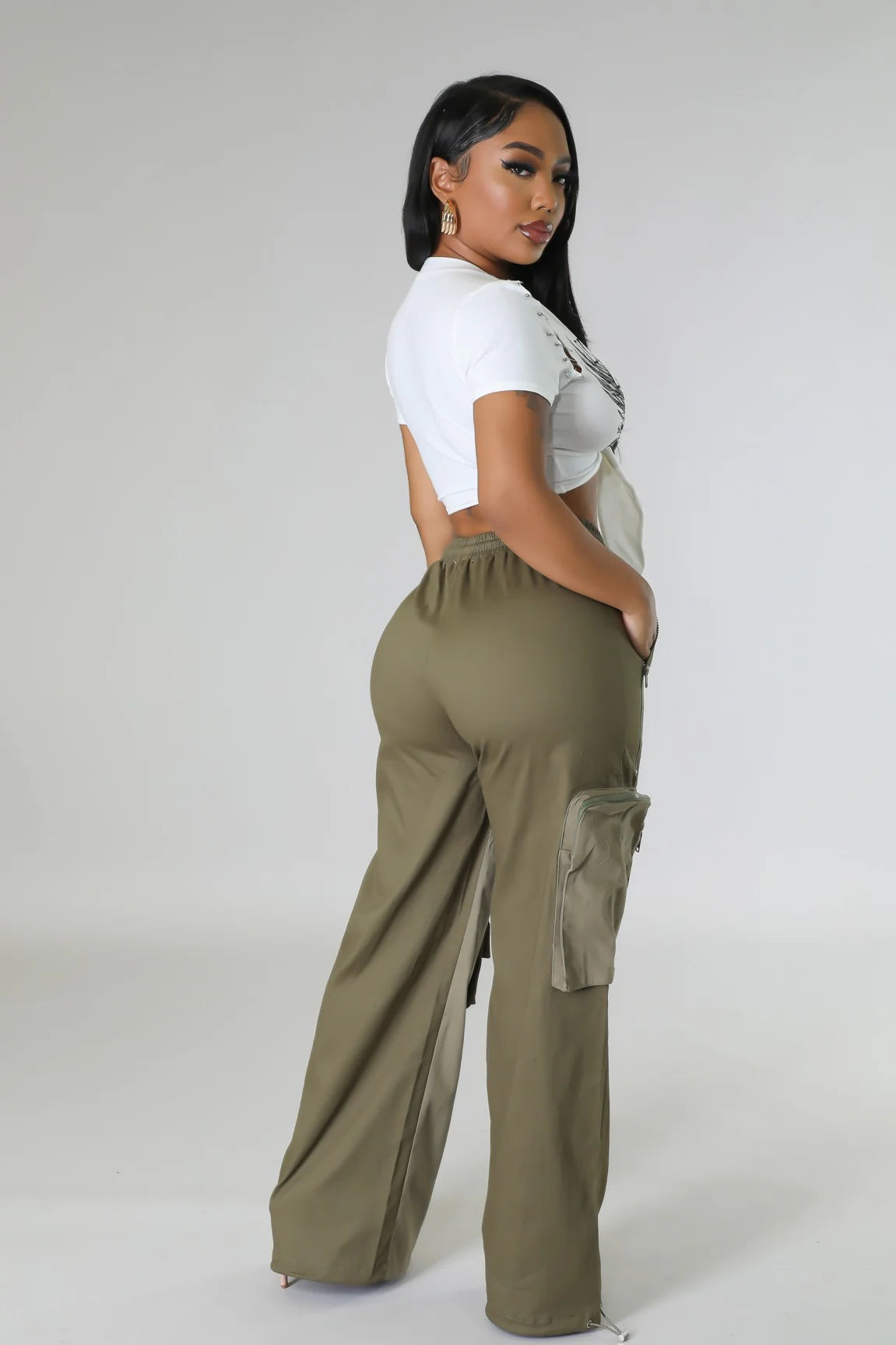 The wide-leg silhouette creates an elongated look, while functional cargo pockets add both style and practicality. Whether you’re running errands, traveling, or styling them up with heels and a fitted top, these pants transition seamlessly from casual to chic.