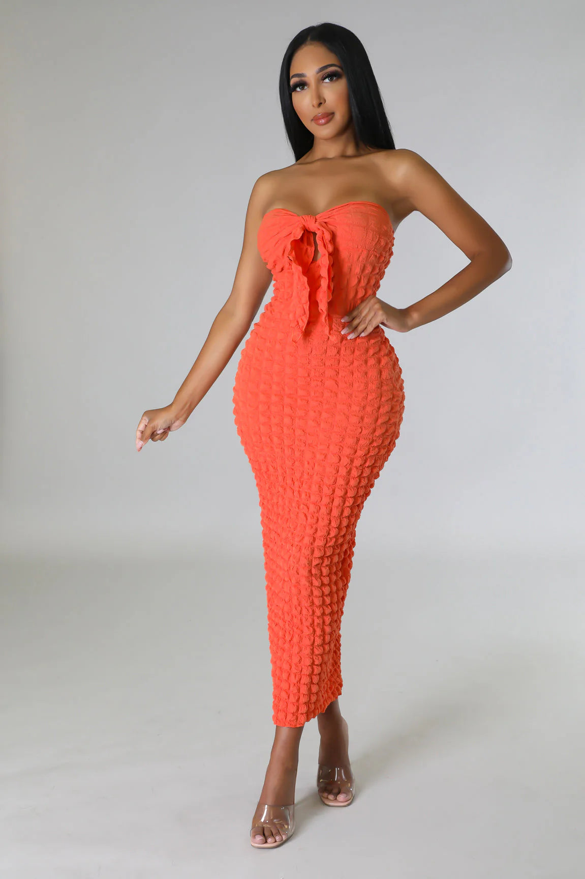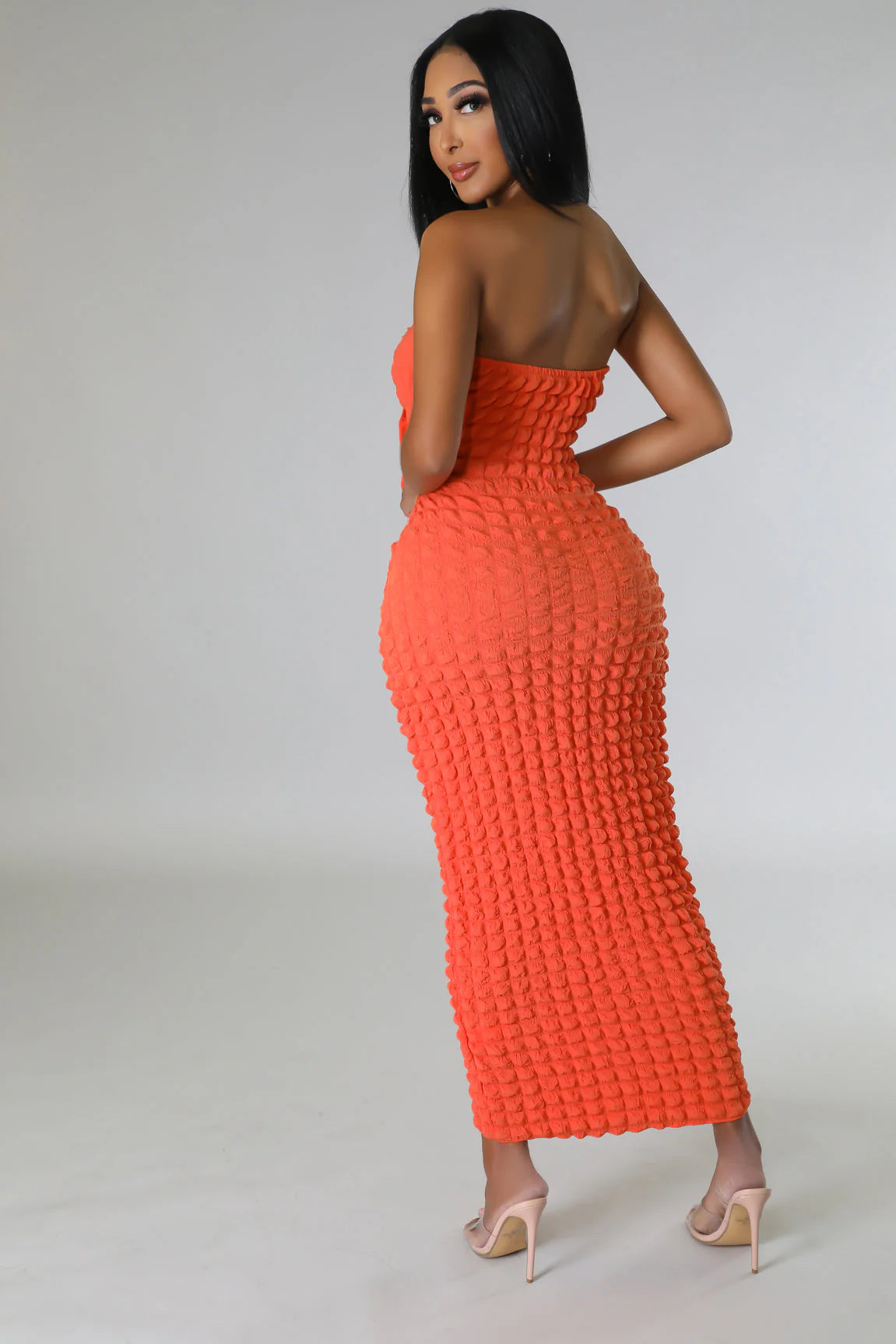 Turn heads effortlessly in the Coral Crush Halter Bubble Maxi Dress, a statement silhouette designed to hug your curves in all the right places. Crafted from textured bubble fabric with a smooth stretch finish, this dress delivers both comfort and confidence. The halter neckline creates a flattering open front, while the low back adds a sultry touch perfect for nights out, vacations, or special occasions. Easy to slip on with no closure, this dress is where bold meets effortless elegance.