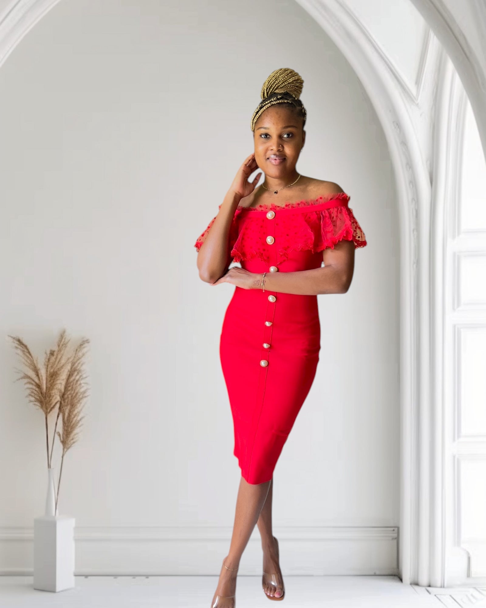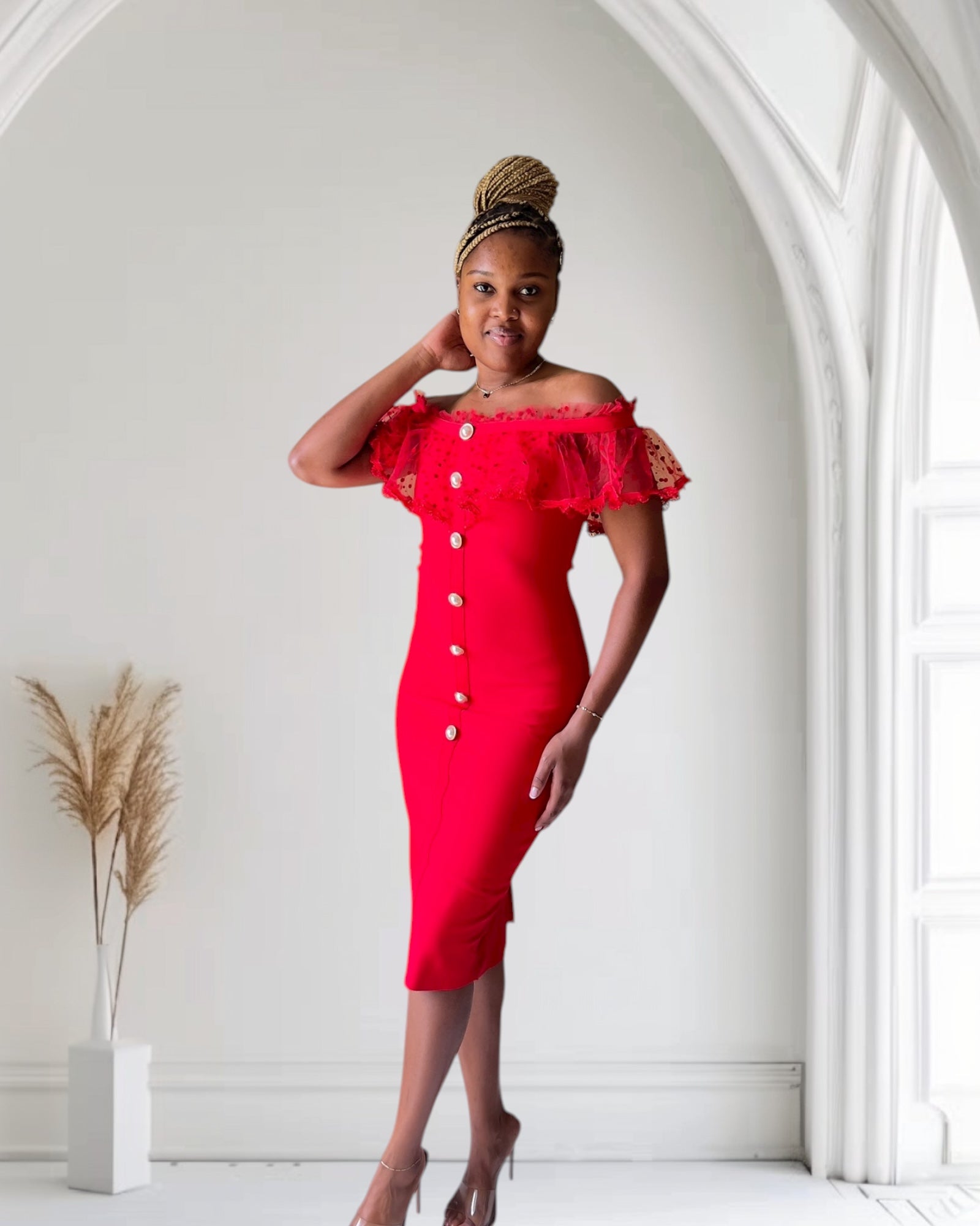 Make every entrance unforgettable in the Lady Luxe Off-Shoulder Bandage Dress, where timeless elegance meets modern allure. Crafted from premium stretch bandage fabric, this curve-enhancing silhouette features romantic ruffled sleeves, pearl-like button accents, and an off-shoulder neckline that flatters every figure. Perfect for date nights, special occasions, or upscale events, this dress radiates confidence and class with every step.