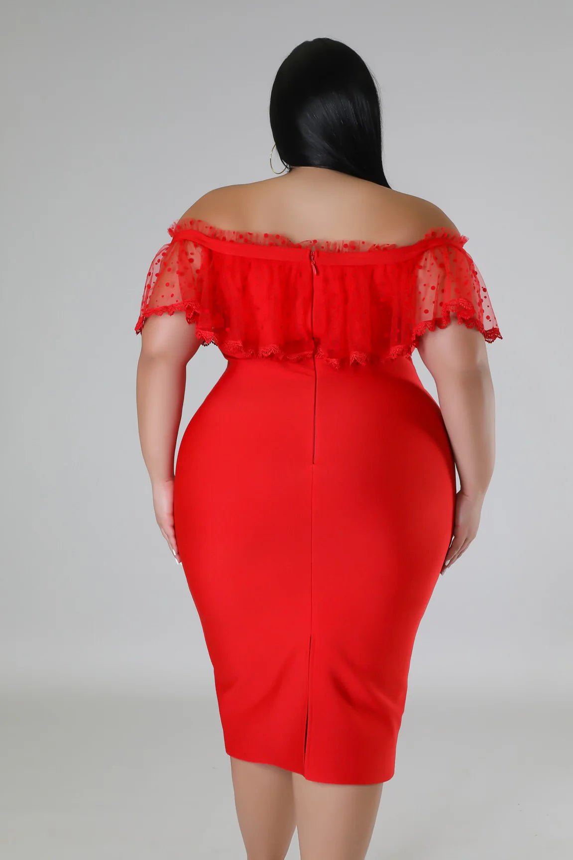 Serve curves, confidence, and classic femininity in this stunning off-shoulder bandage dress. Designed with a sculpting fit and soft ruffle detail, this piece blends bold elegance with a flirty touch — perfect for birthdays, date nights, brunch, or any moment you want all eyes on you.