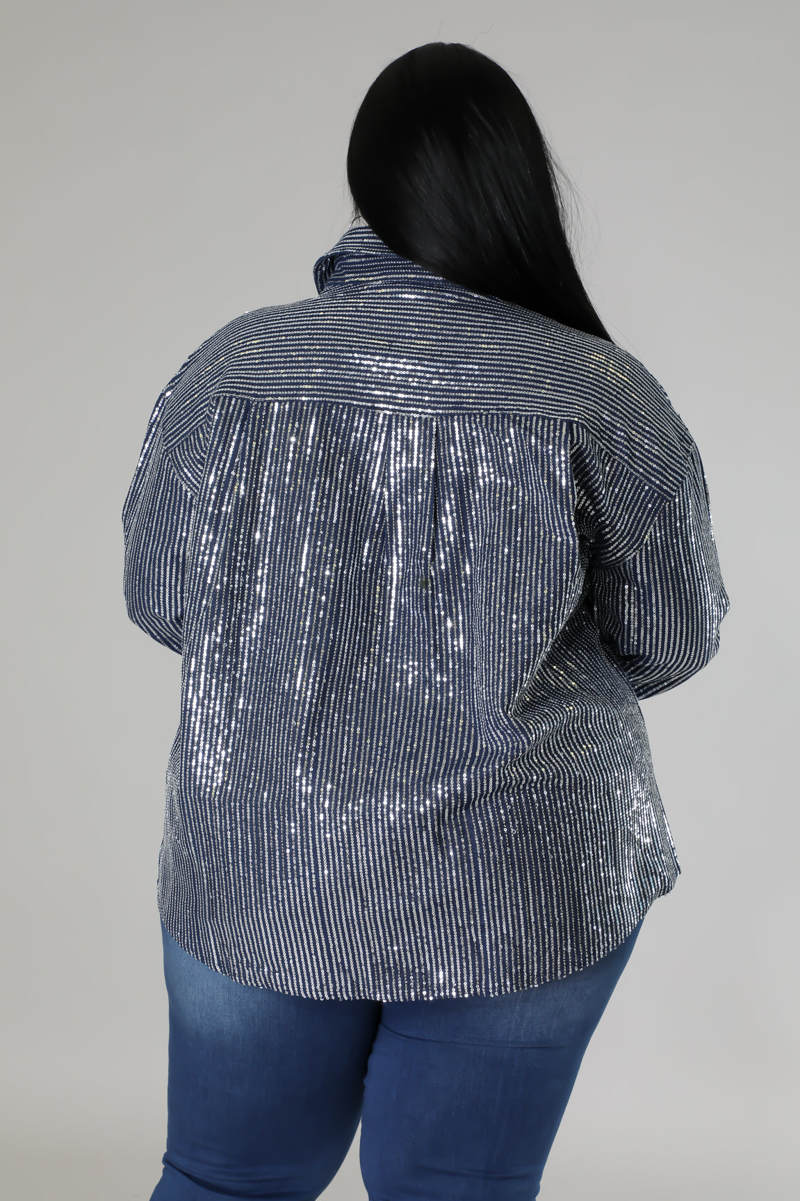 The sparkling vertical sequin design catches the light beautifully, instantly elevating any outfit. Pair it with your favorite jeans, sleek pants, or a fitted skirt for an effortlessly chic boutique look.