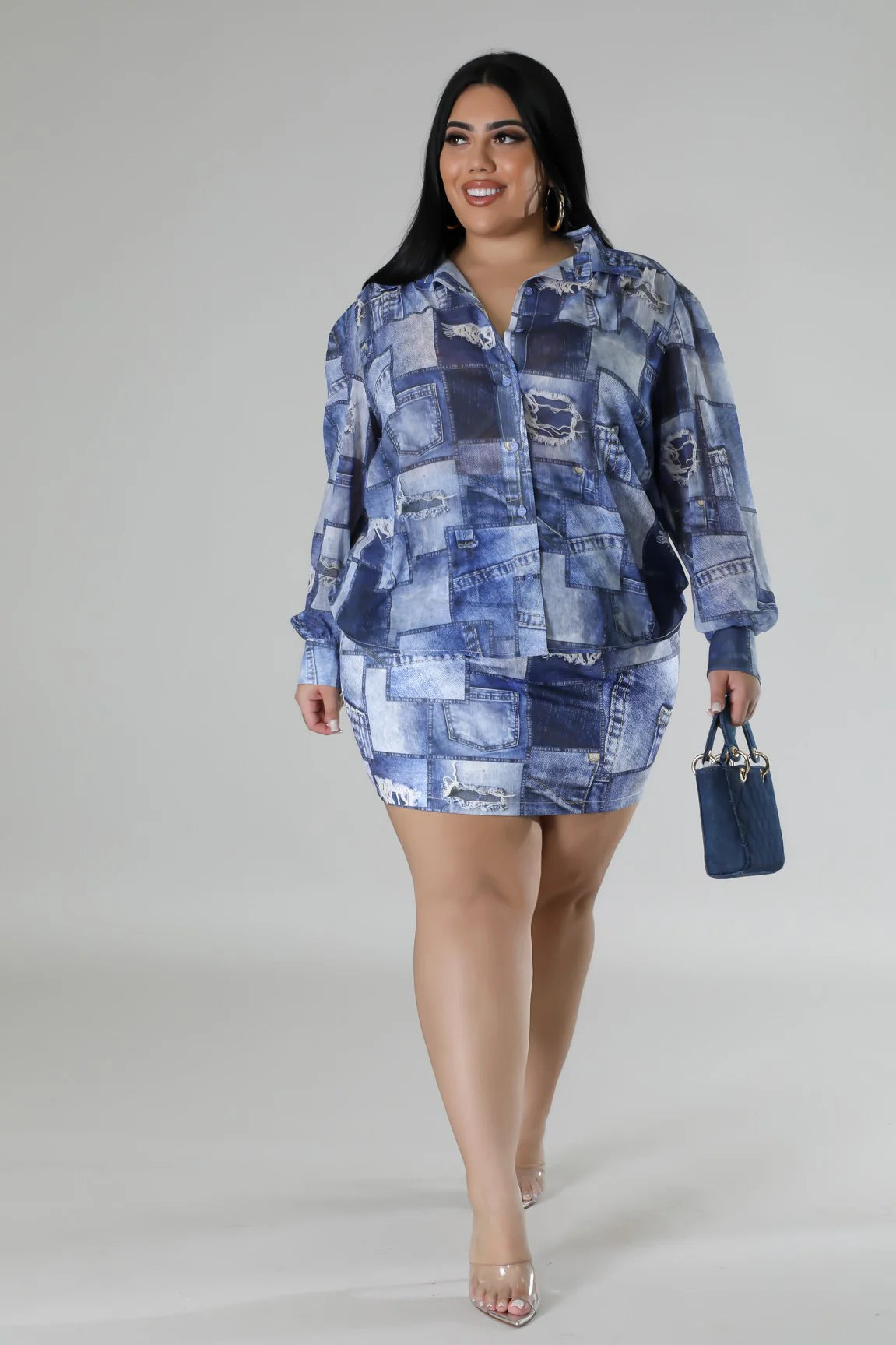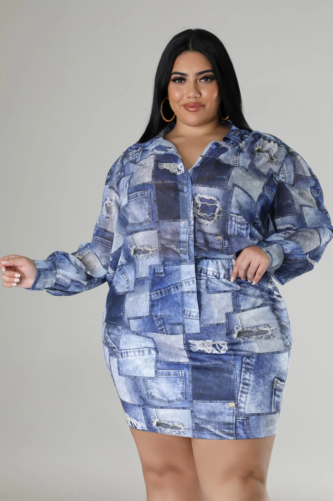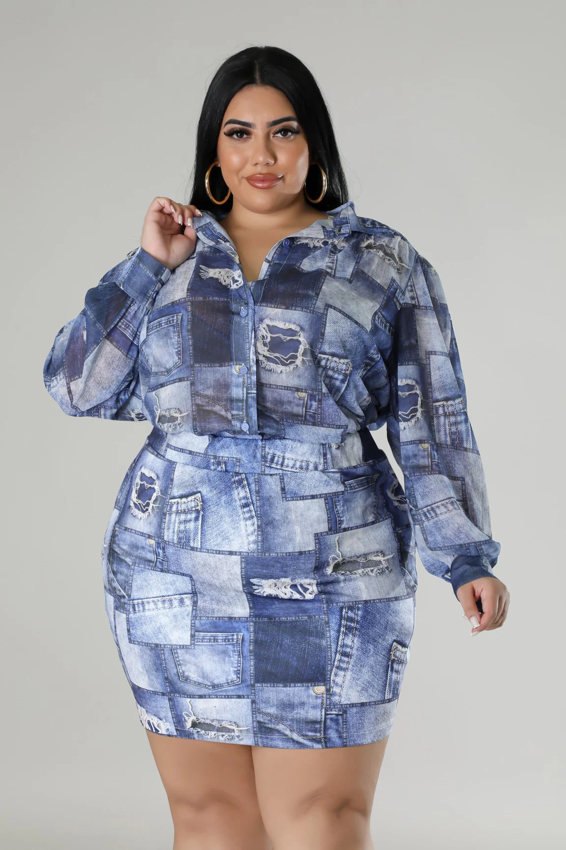Serve denim vibes without the stiffness 🔥 Our Patchwork Denim Print Skirt Set gives effortless style with a button-up long sleeve top and a high-waisted mini skirt that hugs your curves in all the right places.