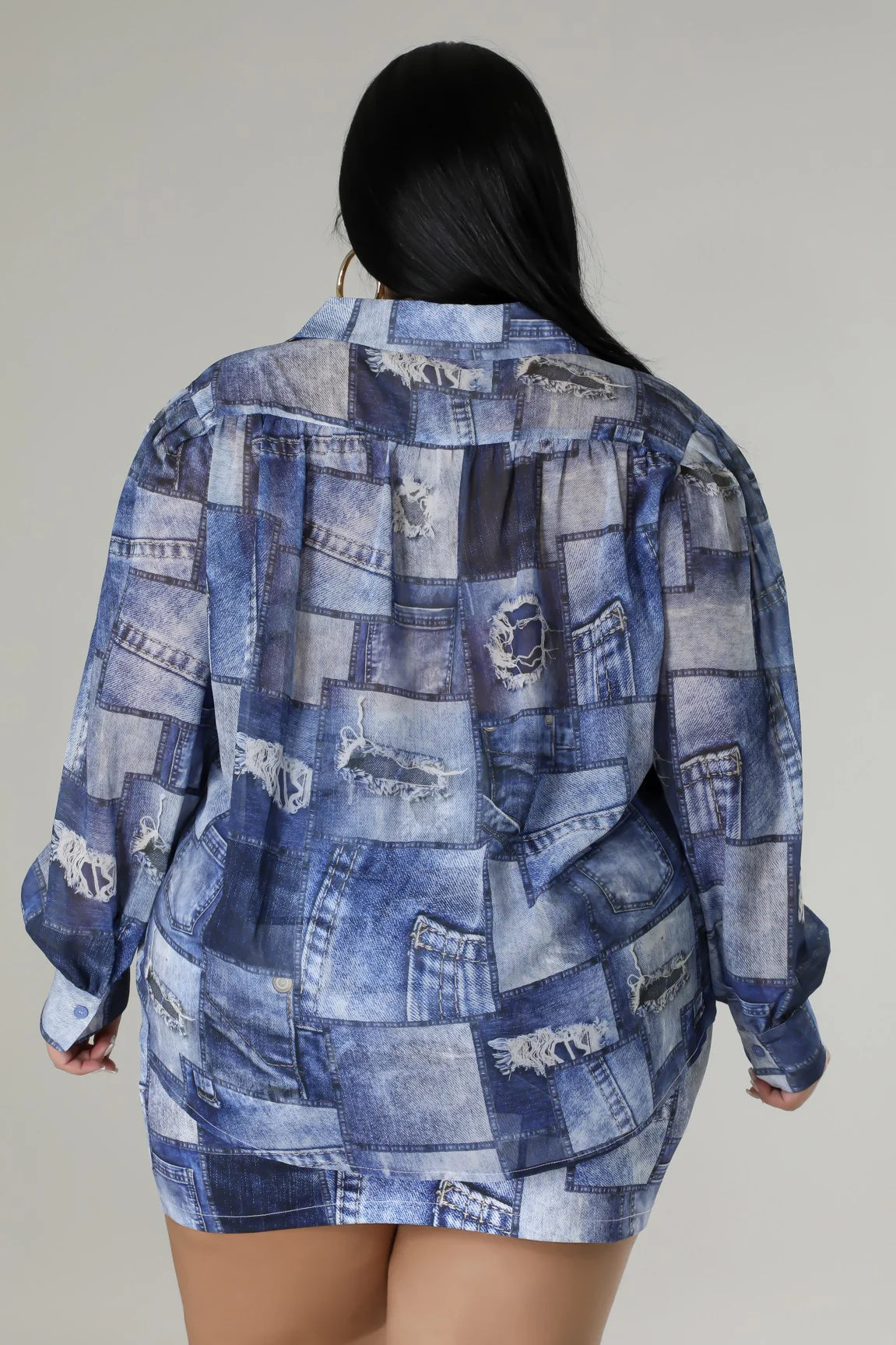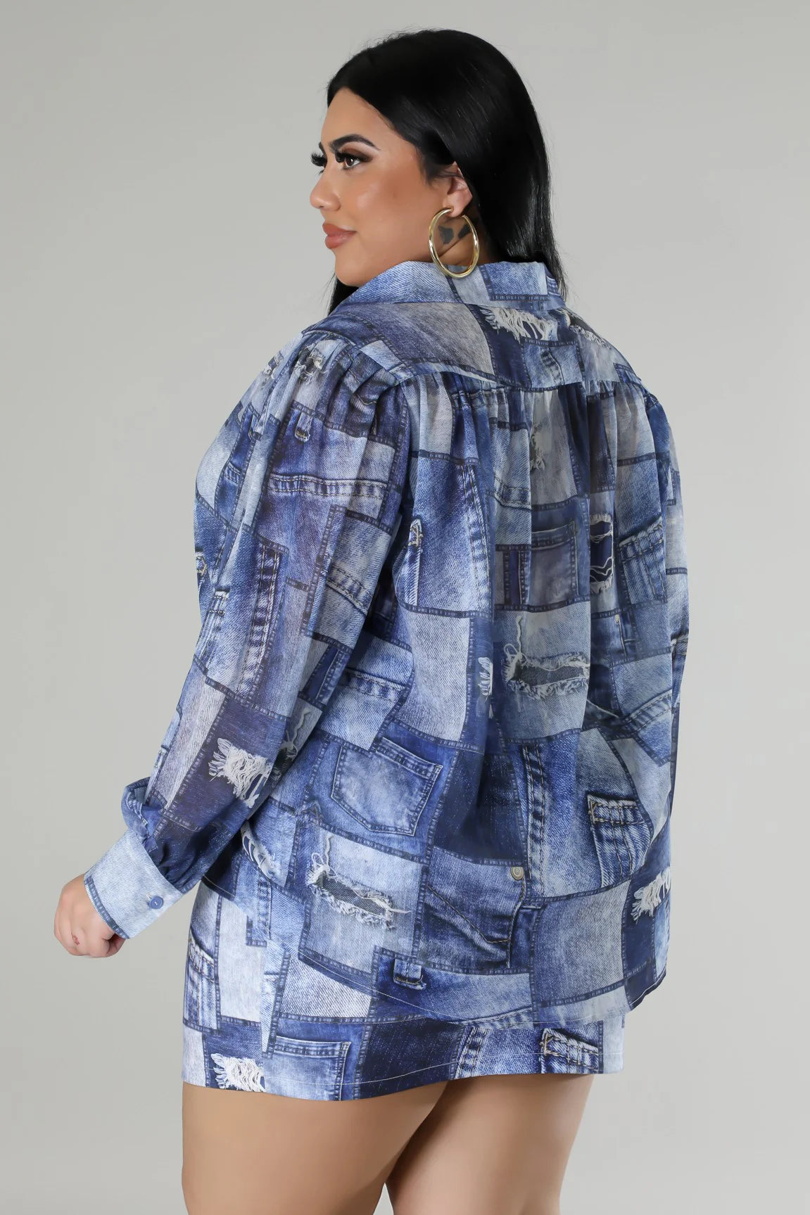 The denim patchwork print creates a standout “jean” look while the semi-stretch fabric keeps things flattering and easy to wear. Perfect for brunch, casual outings, weekend plans, day parties, and vacations, this set gives you a full outfit in one with major style impact.